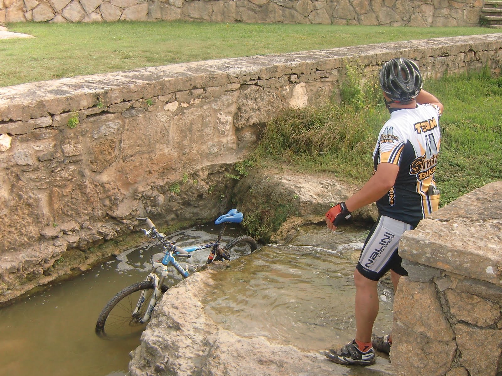 Para terminar o passeio sem gastar €€€ no (passe a publicidade) Elefante Azul, e porque os tempos não estão fáceis para ninguém, procedemos à lavagem de bikes e equipamentos na rotunda da estação da Portela de Sintra que disponibiliza água fresquinha a quem dela necessitar. Bem haja, Dr. Seara!